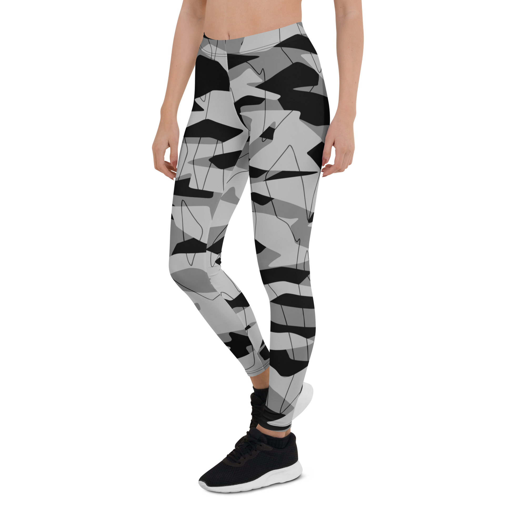 The collection includes pure black leggings, black camouflage, and hybrid designs that fuse animal, terrain, floral, and glitch motifs into blackout mode. Every piece here is bold through restraint — a masterclass in texture, tone, and the seductive silence of no color at all.
